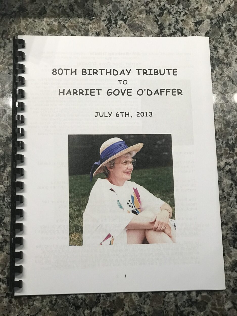 I wrote this 23 page tribute to Harriet when she was halfway through her Alzheimer’s experience. I wanted her to be able to remember her past, and I wanted her kids and grandkids to remember her like she was pre-Alzheimer’s. Harriet looked at the booklet a lot with her family. I think she was proud of it.