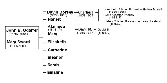 They went to the Lost Creek neighborhood of Miami county, Ohio, where they lived the rest of their life. John B. was said to have been a Dunkard and had 9 children, all women except David Dorsey. John B. is buried in the Lost Creek Cemetary near Miami, Ohio. The chart below shows John B.’s line. See Descendant Chart 4.