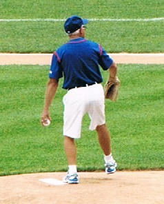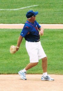 And Hal Lanier, ex-major league player and manager who was managing our local Cornbelters baseball team, said “Throw it from out in front of the mound.” When I rebelled at that, he retorted, with a hint of age prejudice in his eye, “Then throw it high.”